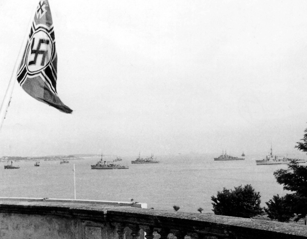 C'est sur le toit de cet hôtel, à l'architecture années 30, que les marins communiquent par signaux avec les navires en rade. Modestes en 1940, les flottilles allemandes s'étoffent au fur et à mesure que la bataille de l'Atlantique se durcit. Démineurs, convoyeurs, briseurs de blocus se succèdent en rade de Royan.