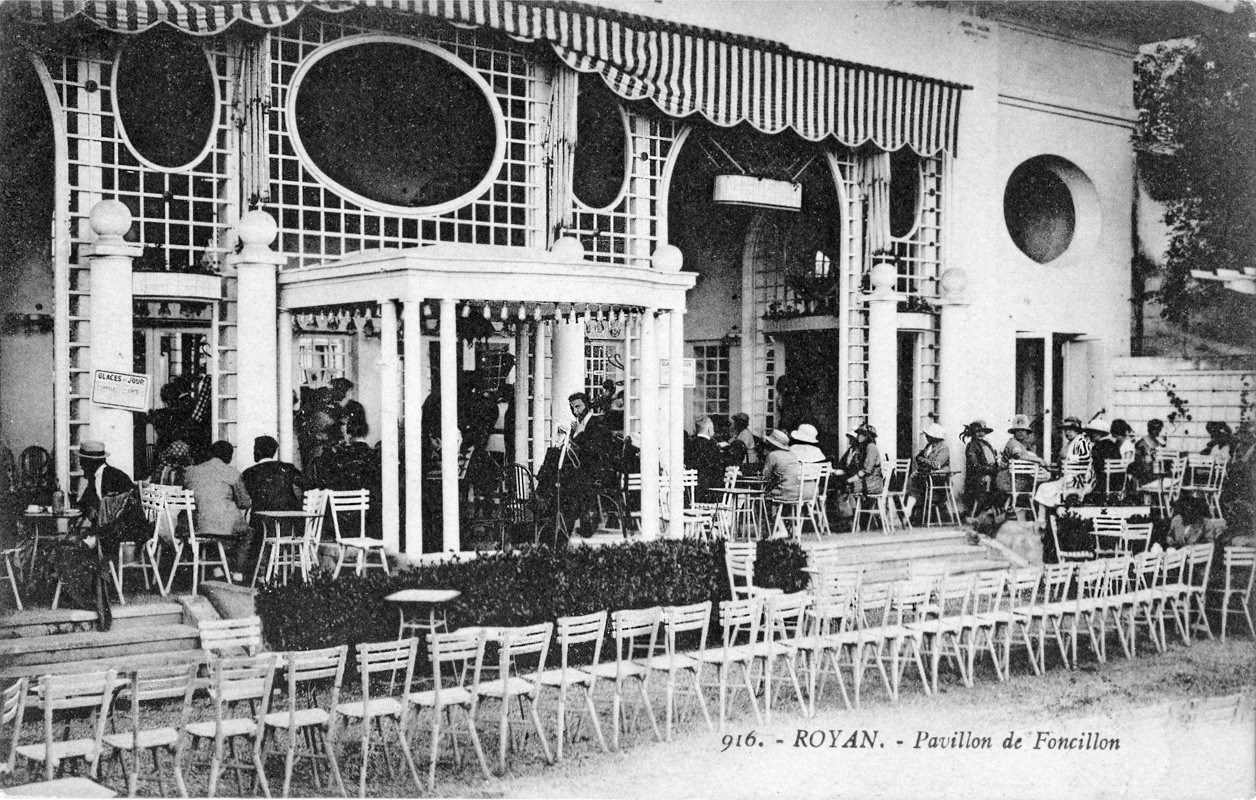 Construites en ciment armé en 1926, ces galeries commerçantes du square Botton remplacent les anciennes baraques foraines. Comme les estivants et les Royannais, les Allemands prennent l'habitude d'y flâner.