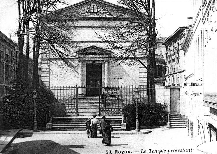 Le pasteur qui officie au temple est Samuel Besançon, un résistant. Il raconte, dans son livre Croix sur Royan, que l'édifice est réquisitionné, pour le culte, par l'aumonier allemand, tous les dimanches matins, obligeant les Royannais à attendre leur tour. Mais à toute chose malheur est bon et cette utilisation a permis d'obtenir du charbon pour "chauffer ces messieurs… et nous après".